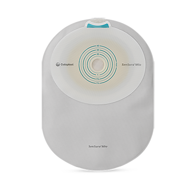 - Unlike other ostomy products, SenSura Mio is made of a material that we otherwise wear on the body, i.e. textile material. It is soft and comfortable against the skin, it provides low friction against clothes and it does not feel wet after taking a shower. In addition, the textile material makes the ostomy pouch look more like a piece of clothing than a medical device
